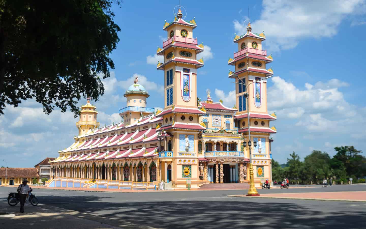 Il Tempio Cao Dai: il movimento Cao Dai, o Caodaismo, è un culto religioso fondato nel 1926 presso Tay Ninh, nel Vietnam meridionale, da Ngo Van Chieu e da alcuni altri discepoli. I fondatori sostenevano di avere ricevuto una rivelazione divina nel corso di una seduta spiritica e di aver ricevuto il compito di fondare una nuova religione aggregando vari elementi mutuati da dottrine orientali ed occidentali.