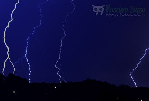 Ieri sera, mentre fuori c’era il diluvio, mi sono preso il tempo di scattare qualche fotografia dei fulmini: il cielo era una festa di lampi tuoni fulmini e saette, ovunque erano bagliori ed esplosioni, l’unica indecisione era su dove puntare la macchina fotografica.