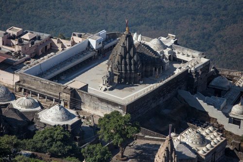 Prima di giungere alla sommità si incontra un gruppo di splendidi templi in marmo per lo più Giainisti. I templi sono situati in un piccolo altopiano dopo circa 3.800 scalini. Sorgono nel luogo consacrato a Neminath, il ventiduesimo Tirthankar o profeta dei 24 profeti sacri del Giainismo.