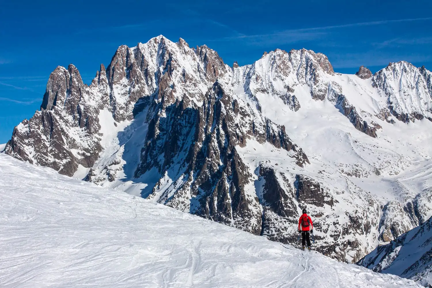 La discesa, di una bellezza senza paragoni comincia da Punta Helbronner, all’arrivo della funivia a 3462 metri di altezza. Passa attraverso una valle che si allarga e si restringe con armoniosa continuità fino ada arrivare ai 1000 metri di Chamonix in Francia. Il tutto ovviamente con gli sci ai piedi.