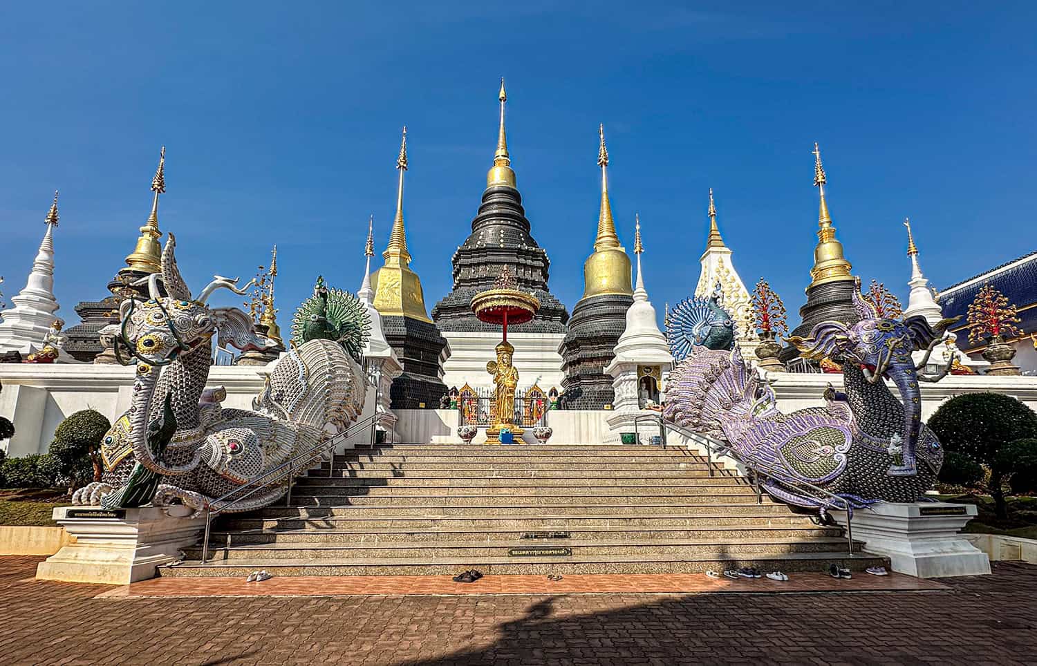 Chiude il complesso un fossato decorativo e una fila di statue di elefanti dorati, che aggiungono ulteriore fascino al suo ambiente. I visitatori possono passeggiare per i giardini tranquilli e ammirare la bellezza del tempio da ogni angolazione.